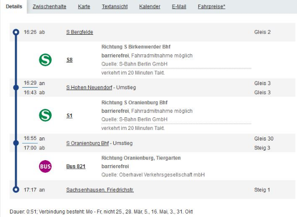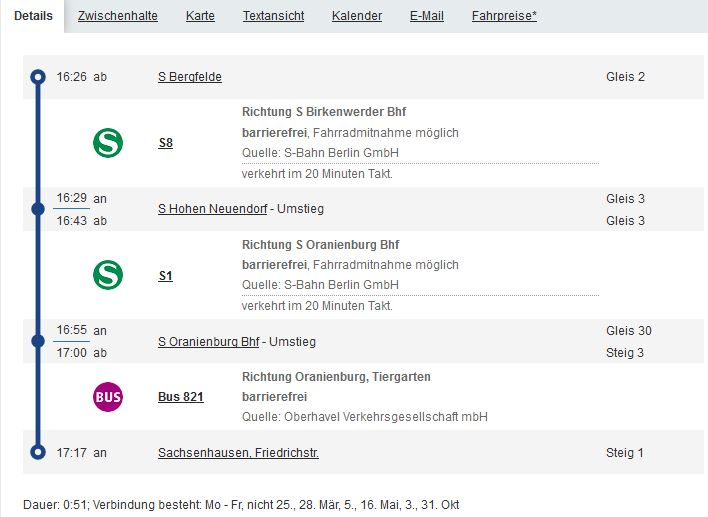 * Bitte die aktuellen Zeiten den Routenplanern der Verkehrsbetriebe (klick) entnehmen.