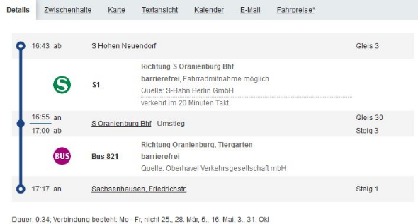* Bitte die aktuellen Zeiten den Routenplanern der Verkehrsbetriebe (klick) entnehmen.
